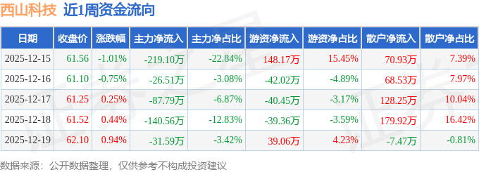 - 如何利用杠杆炒股 本周盘点(12.15-12.19):西山科技周跌0.14%,主力资金合计净流出505.56万元2025-12-25
